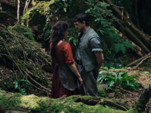 Se nos presenta a Agnes como una mujer que lleva un estilo de vida muy en sintonía con la naturaleza y la espiritualidad, pasando sus días en el bosque, pese a las expectativas sociales de la época. En ese escenario conoce a William, que todavía no es el gran dramaturgo Shakespeare, solo un joven incapaz de sostener un empleo por mucho tiempo, quien trata de ayudar a su padre a pagar sus deudas. La conexión entre ellos es instantánea, y con el apoyo del hermano de Agnes, Bartholomew, interpretado por un Joe Alwyn (The Brutalist) que se consolida como un actor secundario sólido, se casan e inician una familia de la que procrearían tres hijos: Susanna, y los mellizos Judith y Hamnet.